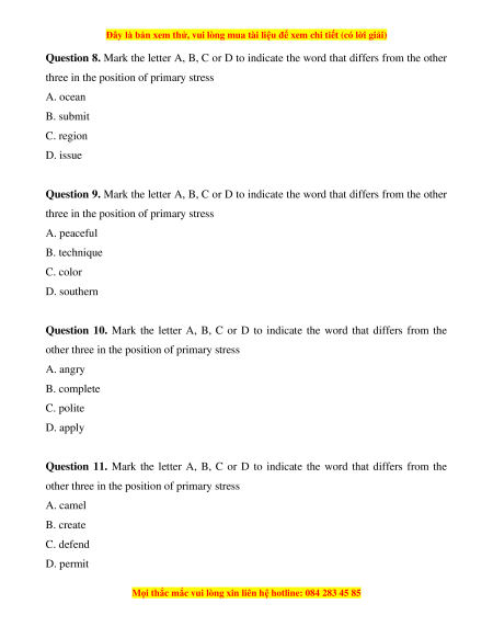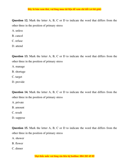 Đây là bản xem thử, vui lòng mua tài liệu để xem chi tiết (có lời giải)