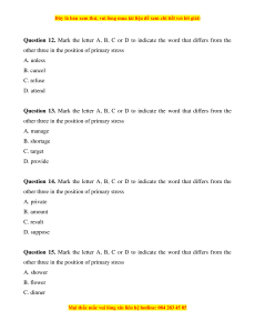Question 12. Mark the letter A, B, C or D to indicate the word that differs from the