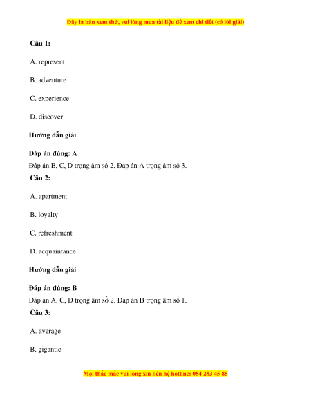 Đây là bản xem thử, vui lòng mua tài liệu để xem chi tiết (có lời giải)