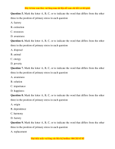 three in the position of primary stress in each question A. factory B. extinction C. resources D. awareness