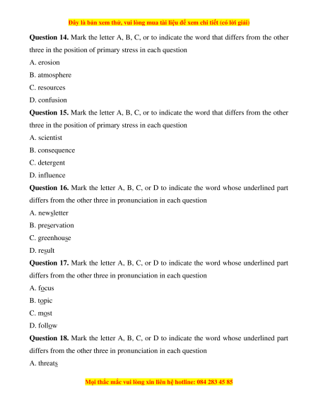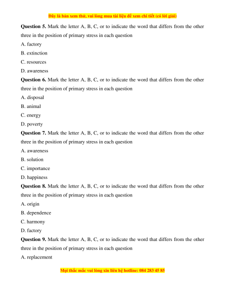 Đây là bản xem thử, vui lòng mua tài liệu để xem chi tiết (có lời giải)
