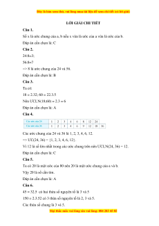=> 8 là ước chung của 24 và 56. Đáp án cần chọn là: B Câu 3. Ta có: 18 = 2.32; 60 = 22.3.5 Nên ƯCLN(18;60) = 2.3 = 6 Đáp án cần chọn là: A Câu 4.