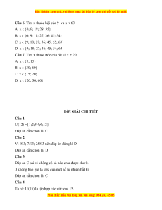 → x ∈ {0; 9; 18; 27; 36; 45; 54} Câu 7. x U (60) x 20