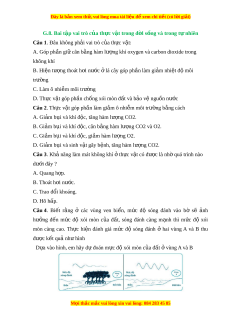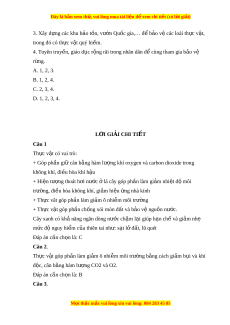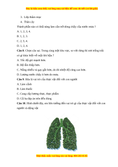 ậ góp phần chống xói mòn đ t ấ và b o v ả ngu ệ n n ồ ư c ớ Câu 2. Th c v ự t ậ góp phần làm gi m ả ô nhi m ễ môi trư ng b ờ ng ằ cách A. Gi m ả b i ụ và khí đ c, ộ tăng hàm lư ng C ợ O2. B. Gi m ả b i ụ và khí đ c, cân ộ b ng hàm ằ lư ng ợ CO2 và O2. C. Gi m ả b i ụ và khí đ c, gi ộ m ả hàm lư ng O ợ 2. D. Gi m ả b i ụ và sinh v t ậ gây b nh, t ệ ăng hàm lư ng ợ CO2. Câu 3. Kh năng ả