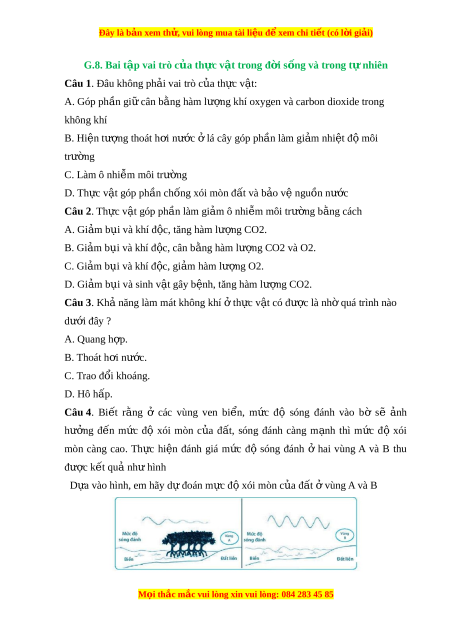 Câu 2. Th c v t góp ph n làm gi m ô nhi m môi tr ng b ng cáchự ậ ầ ả ễ ườ ằ