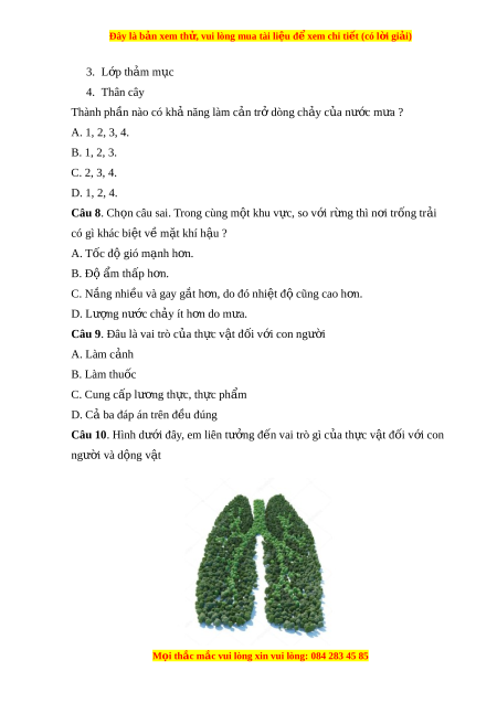 D. Cả ba đáp án trên đ u đúng ề Câu 10. Hình dư i ớ đây, em liên tư ng ở đ n vai ế trò gì c a ủ th c v ự t ậ đ i ố v i ớ con ngư i ờ và d ng ộ v t ậ M i