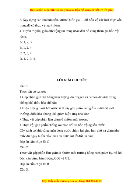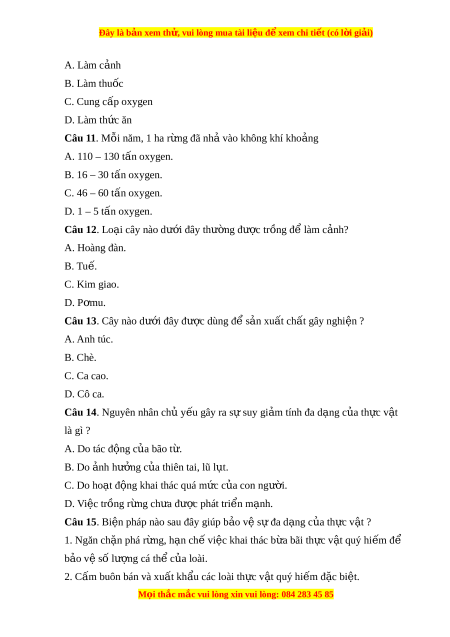 Đây là bản xem th , vu ử i lòng mua tài li u ệ đ xe ể m chi ti t ế (có l i ờ gi i ả ) A. Làm c nh ả B. Làm thu c ố C. Cung c p oxygen ấ D. Làm th c ứ ăn