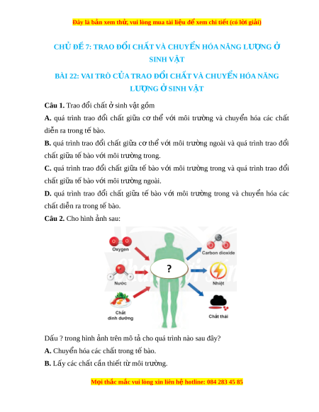 Đây là bản xem th , vu ử i lòng mua tài li u ệ đ xe ể m chi ti t (c ế ó l i ờ gi i ả ) CH Đ Ủ Ề 7: TRAO Đ I Ổ CH T Ấ VÀ CHUY N Ể HÓA NĂNG LƯ N Ợ G Ở SINH VẬT