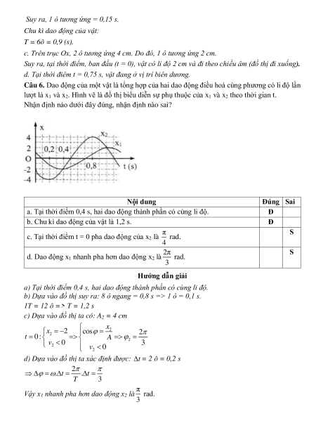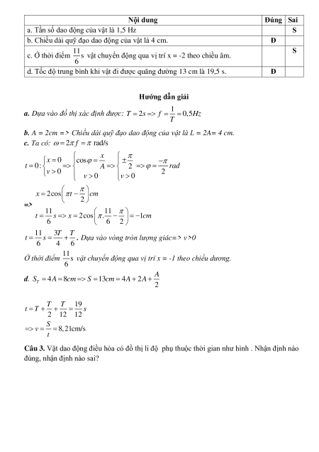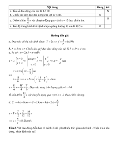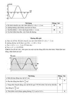 Câu 1. Phương trình dao động của một vật dao động điều hoà có dạng x Acos(t ) cm. 3 Nội dung Đúng Sai