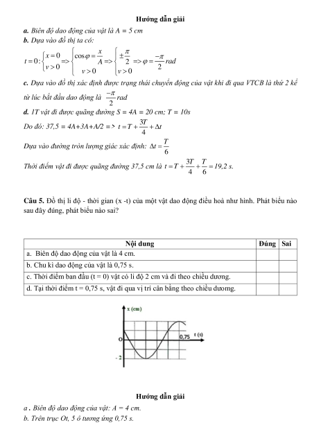 d. Tại thời điểm ban đầu, vật ở biên độ dương. S Hướng dẫn giải