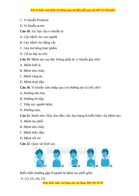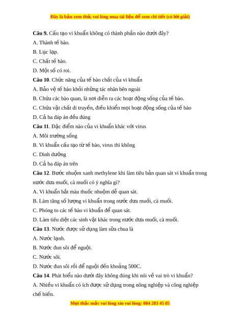 Đây là bản xem th , vu ử i lòng mua tài li u ệ đ xe ể m chi ti t ế (có l i ờ gi i ả ) B. Vi khuẩn đư c ợ s d ử ng ụ trong s n xu ả t ấ vaccine và thu c kháng s ố inh. C. M i ọ vi khuẩn đ u có l ề i ợ cho t nhi ự ên và đ i ờ s ng con ng ố ư i ờ .