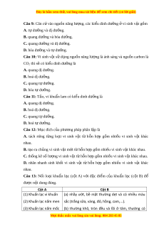 nhau như trắng, vàng, đen, xanh,… A. 1-a, 2-b, 3-c. B. 1-b, 2-c, 3-a. C. 1-a, 2-c, 3-b. D. 1-c, 2-b, 3-a. Câu 14: Đ ể nghiên c u ứ hình thái vi sinh v t ậ thư ng ờ ph i ả làm tiêu b n ả r i ồ đem soi dư i ớ kính hi n vi ể vì A. vi sinh v t ậ có kích thư c ớ nh bé. ỏ B. vi sinh v t ậ có cấu t o đ ạ n gi ơ n. ả C. vi sinh v t