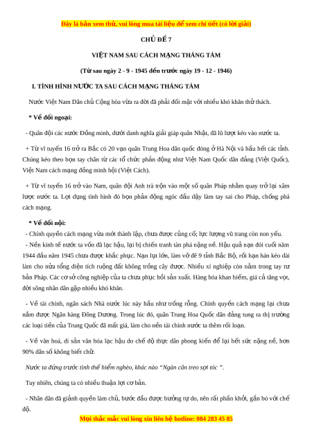 ệ đ xe ể m chi ti t (c ế ó lời gi i ả ) CHỦ Đ 7 Ề VI T Ệ NAM SAU CÁCH M N Ạ G THÁNG TÁM (T s