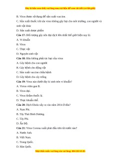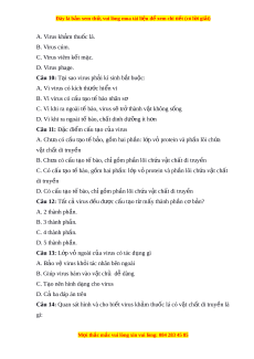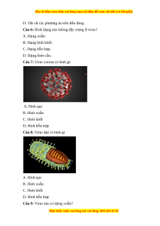 Đây là bản xem th , vu ử i lòng mua tài li u ệ đ xe ể m chi ti t ế (có l i ờ gi i ả ) D. Tất cả các phư ng ơ án trên đ u ề đúng Câu 6: Hình d ng ạ nào không đ c ặ tr ng ư ở virus? A. D ng xo ạ n ắ B. D ng ạ hình khối. C. D ng ạ hỗn h p. ợ D. D ng hì ạ nh cầu.
