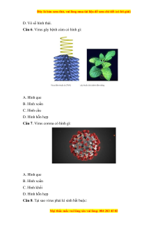 Câu 6. Virus gây bệnh cúm có hình gì: A. Hình que B. Hình xoắn C. Hình cầu D. Hình hỗn hợp