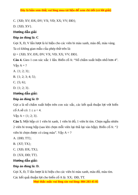 ử vui lòng mua tài li u ệ đ ể xem chi ti t ế (có l i ờ gi i ả ) Do đó, A = {XX; ĐĐ; TT}. Câu 6. M t ộ h p