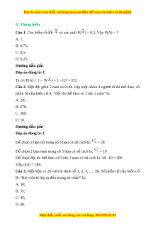 ạ có số cách là: C5 = 10 Để ch n đ ọ i ộ thi th t ể hao có 2 n , 2 nam ữ có s cách l ố à: 28 . 10 = 280 V y ậ n(A) = 280. Câu 3. M t ộ h p ộ có 20 viên bi đánh s ố 1, 2, 3, …, 20. S ố ph n ầ t ử c a ủ bi n ế cố B: “Hai viên bi l y r ấ a đ u ề mang s ch ố n” ẵ là: A. 30; B. 35; C. 45; D. 40. Mọi th c ắ m c