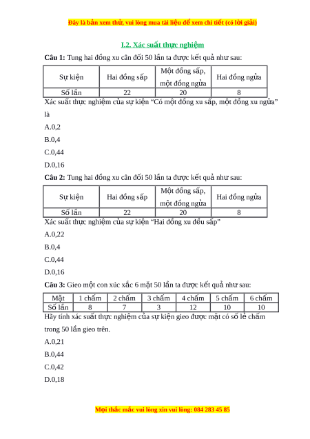 Đây là bản xem th , vu ử i lòng mua tài li u ệ đ xe ể m chi ti t ế (có l i ờ gi i ả ) I .2. X ác su t ấ th c ự nghi m ệ