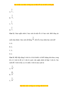 Câu 12. Ch n ng u nhiên 2 h c sinh t m t t có 9 h c sinh. Bi t r ng xácọ ẫ ọ ừ ộ ổ ọ ế ằ