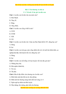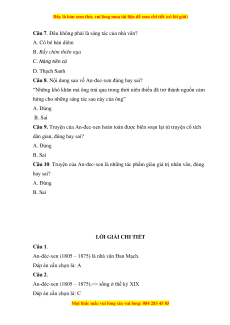 Ông là nhà văn vĩ đại của Đan Mạch thế kỉ XIX Đáp án cần chọn là: B Câu 4.