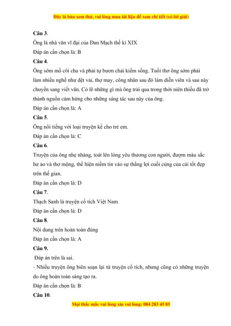 Ông nổi tiếng với loại truyện kể cho trẻ em. Đáp án cần chọn là: C Câu 6.