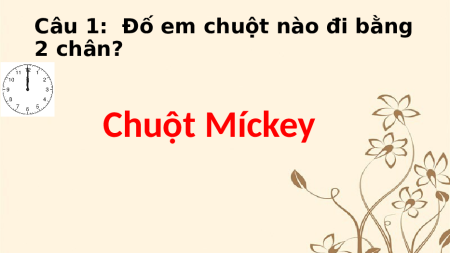 Câu 1: Đố em chuột nào đi bằng 2 chân? Chuột Míckey