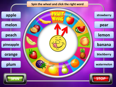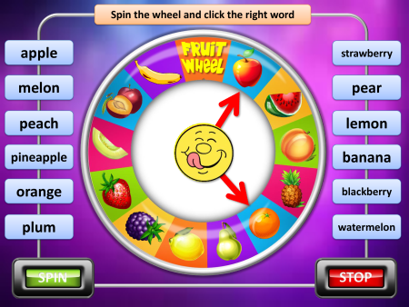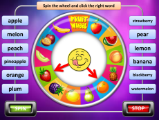 Spin the wheel and click the right word apple strawberry melon pear peach lemon pineapple banana orange blackberry plum watermelon