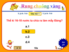 Thế kỉ 16-18 nước ta chia ra làm mấy Đàng? a.1 b.2 c.3 d.4 1 2 3 4 5 6 7 8 9 HÕt giê §¸p ¸n 10s Home C©u hái 2