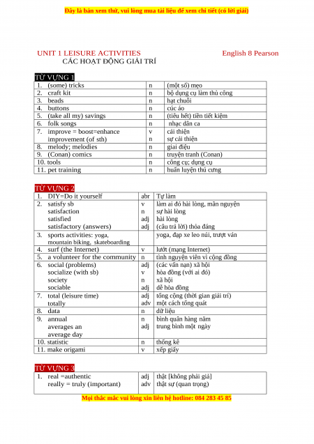 (tiêu hết) tiền tiết kiệm 6. folk songs n nhạc dân ca 7. improve = boost=enhance v cải thiện improvement (of sth) n sự cải thiện 8. melody; melodies n giai điệu 9. (Conan) comics n truyện tranh (Conan) 10. tools n công cụ; dụng cụ 11. pet training n huấn luyện thú cưng TỪ VỰNG 2 1. DIY=Do it yourself abr Tự làm 2. satisfy sb v