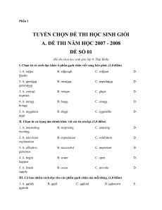 A. ĐỀ THI NĂM HỌC 2007 - 2008 ĐỀ SỐ 01