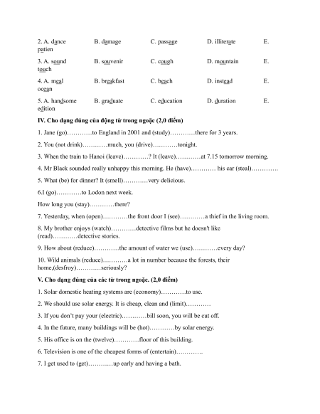 IV. Cho dạng đúng của động từ trong ngoặc (2,0 điểm)