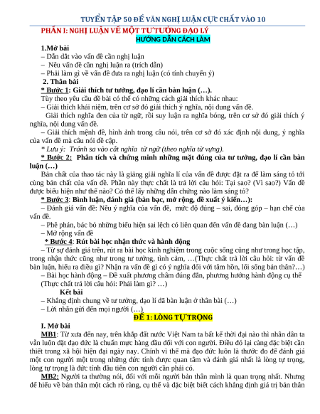 TUY N T Ể P 50 Đ Ậ VĂN NGH Ề LU Ị N C Ậ C CH Ự T VÀO 10 Ấ
