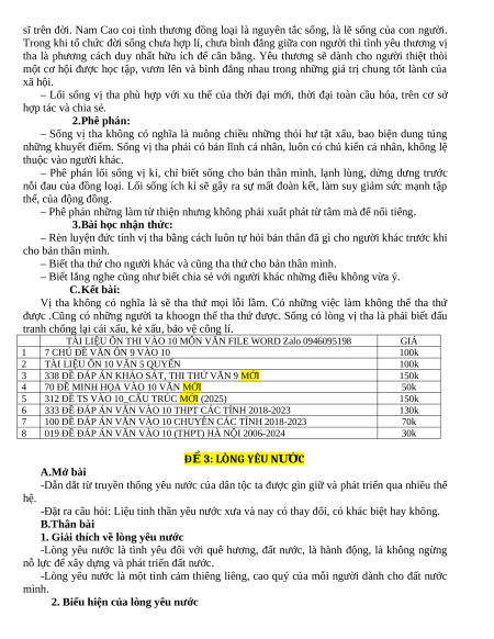 019 ĐỀ ĐÁP ÁN VĂN VÀO 10 (THPT) HÀ NỘI 2006-2024 30k Đ 3: LÒNG YÊU N Ề C ƯỚ A.Mở bài