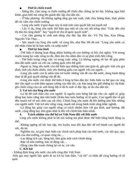 -Lòng yêu nước là tình yêu đối với quê hương, đất nước, là hành động, là không ngừng