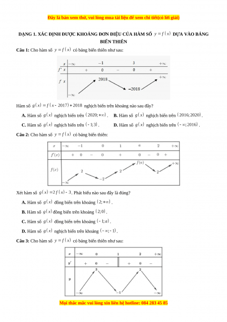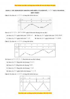 DẠNG 1. XÁC ĐỊNH ĐƯỢC KHOẢNG ĐƠN ĐIỆU CỦA HÀM SỐ DỰA VÀO BẢNG BIẾN THIÊN Câu 1: Cho hàm số