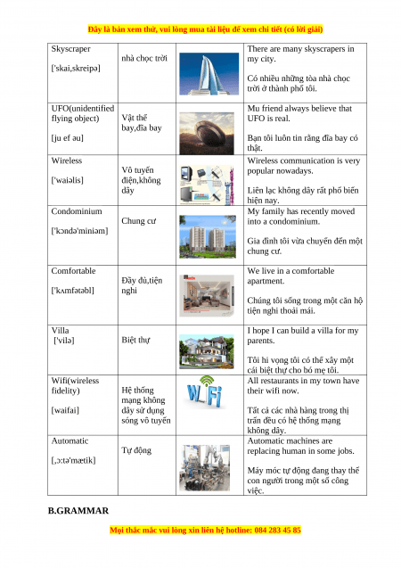 con người trong một số công việc. B.GRAMMAR