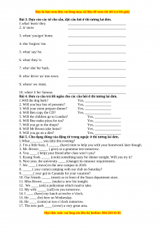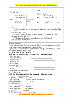 sắm) Thể nghi vấn Câu trả lời ngắn I/You/We/They I/You/We/They Danh từ số nhiều Yes, Danh từ số nhiều will Will + V nguyên He/She/It mẫu He/She/It Danh từ số ít No, Danh từ số ít won’t Ví dụ: