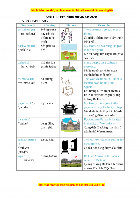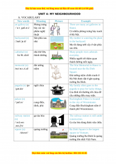 UNIT 4: MY NEIGHBOURHOOD A. VOCABULARY New words Meaning Picture Example art gallery (n) Phòng trưng