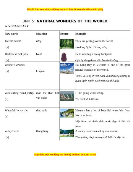 Unit 5: NATURAL WONDERS OF THE WORLD - Luyện chuyên sâu Ngữ pháp và Bài tập tiếng Anh 6