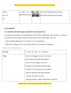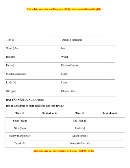 Bài 1: Cho dạng so sánh nhất của các tính từ sau: