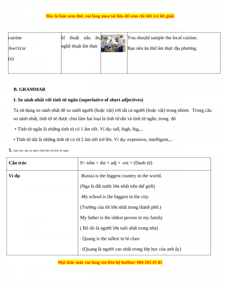 Bạn nên ăn thử ẩm thực địa phương. (n) B. GRAMMAR