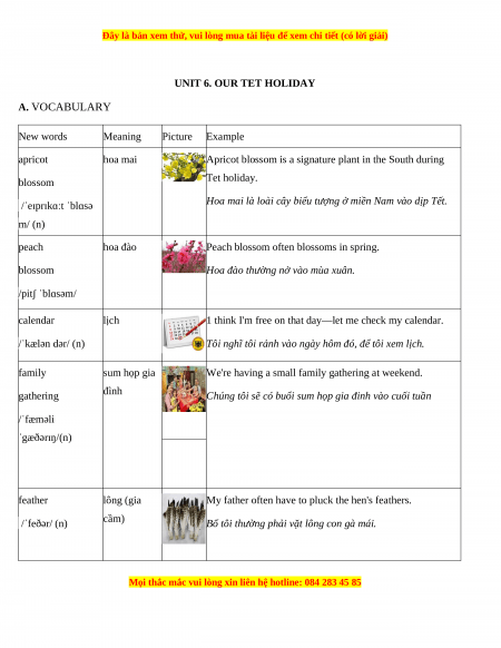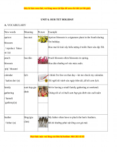 UNIT 6. OUR TET HOLIDAY A. VOCABULARY New words Meaning Picture Example apricot hoa mai