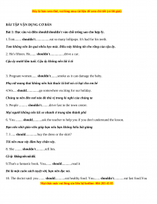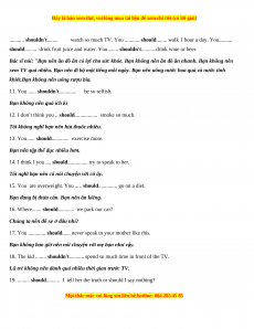 Bài 1: Đọc câu và điền should/shouldn't vào chỗ trống sao cho hợp lý.