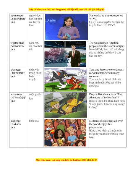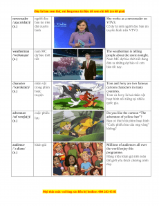 đưa ra những dự báo về cơn bão tối nay. character nhân vật Tom and Jerry are two famous /ˈkærəktə(r)/ trong phim cartoon characters in many (n.) hoặc countries. truyện