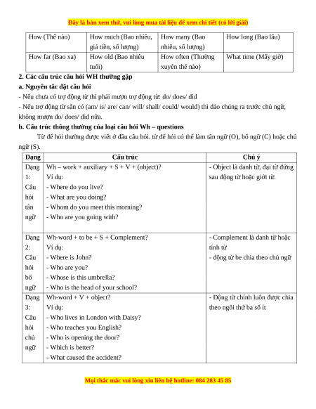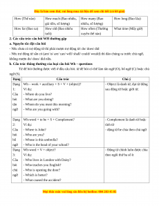 b. Cấu trúc thông thường của loại câu hỏi Wh – questions