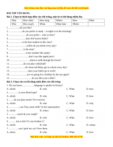 Bài 2. Chọn câu trả lời đúng nhất điền vào chỗ trống