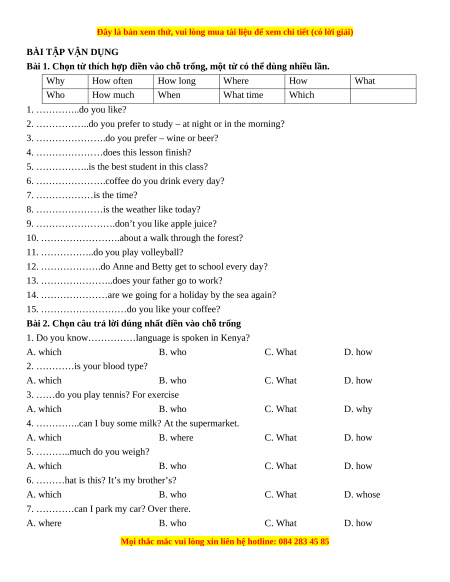 Đây là bản xem thử, vui lòng mua tài liệu để xem chi tiết (có lời giải)