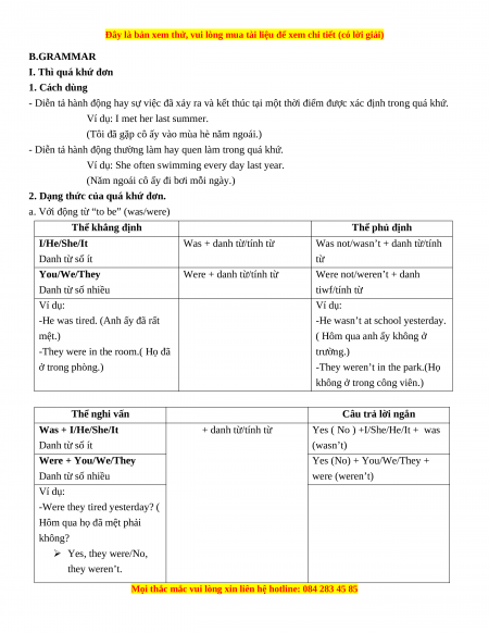 B.GRAMMAR I. Thì quá khứ đơn 1. Cách dùng