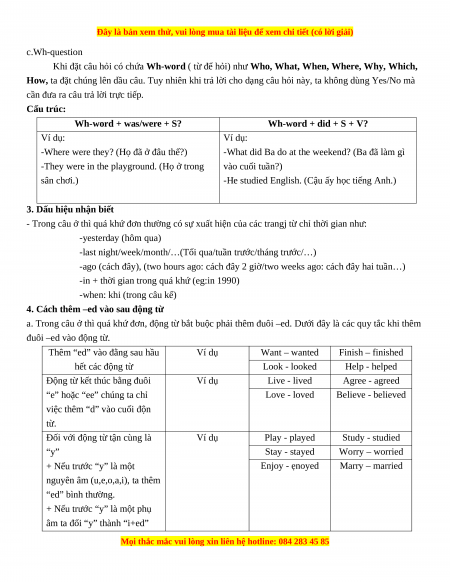 a. Trong câu ở thì quá khứ đơn, động từ bắt buộc phải thêm đuôi –ed. Dưới đây là các quy tắc khi thêm