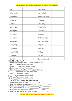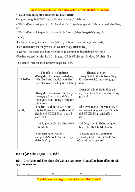Bài 1:Cho dạng quá khứ phân từ (V3) của các đọng từ sau,dùng bảng động từ bất
